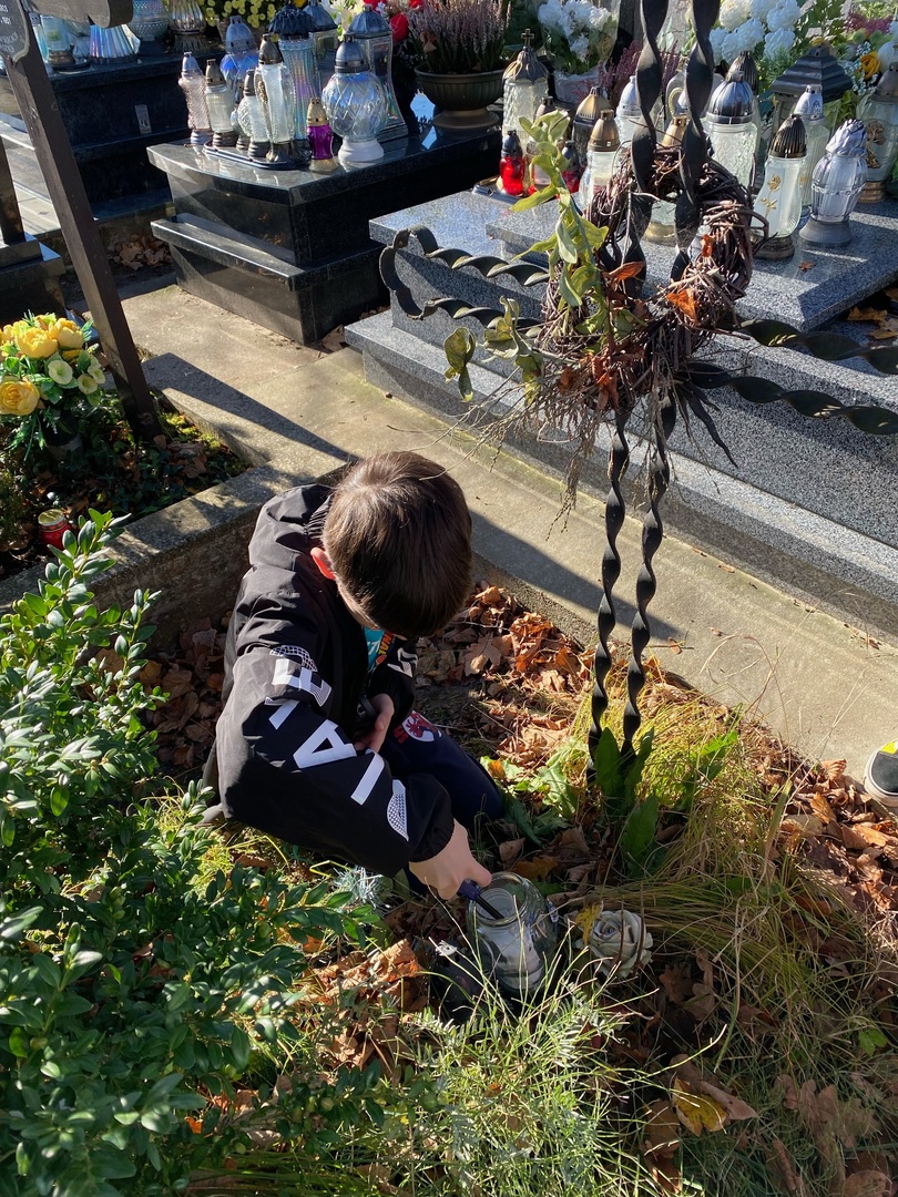 Chwila refleksji i zadumy... Dzisiaj przedstawiciele wszystkich klas wybrali się na pobliski cmentarz, by zapalić znicze na zapomnianych już grobach. Był to czas na chwilę refleksji w związku z obchodzonym niedawno Świętem Zmarłych. Zdjęcia Zobacz również Dzień Dyni Europejski Tydzień Kodowania Międzynarodowy Dzień Postaci z Bajek Chwila refleksji i zadumy... Wyjazd edukacyjny do Planetarium w Chorzowie Andrzejki klas IV-VIII 08 listopada 2022 Aktualności Wydrukuj Udostępnij Wyświetlono: 133