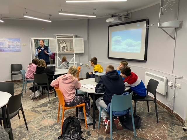 Wyjazd klasy V do Planetarium Śląskiego okazał się prawdziwą eksplozją wiedzy geograficznej! Uczniowie usystematyzowali swoją dotyczasową wiedzę dotyczącą zjawisk zachodzących w atmosferze, jak również odbyli niesamowitą wędrówkę naukową do wnętrza Ziemi, dowiedzieli się, w jaki sposób powstają trzęsienia Ziemi oraz poczuli je na własnej skórze! Zobaczyli symulację wędrówki kontynentów, przyjrzeli się bliżej budowie planet Układu Słonecznego. Brali udział w warsztatach meteorologicznych, mieli możliwość wcielić się w rolę prezentera pogody Zobaczyli, w jaki sposób powstają m.in. burza, chmury, deszcz, śnieg i trąba powietrzna. Seans „Explore” przybliżył nam historię odkryć astronomicznych oraz przenisół w świat astrologii.