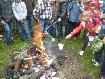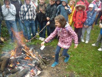 Mostem łączącym nas z Janem Pawłem II było wymowne spalanie w ognisku myśli, podziękowań, próśb, które uczniowie przygotowali indywidualnie i klasowo.