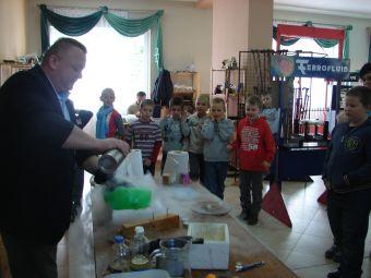 30 października uczniowie klas I-III uczestniczyli w naukowych warsztatach w OSP w Świnnej. Najmłodsi badacze przyrody mieli możliwość m.in. obserwować doświadczenia z ciekłym azotem, zapoznać się z różnymi rodzajami skał, które budują skorupę ziemską. Ponadto sami wykonywali doświadczenia na wystawie interaktywnej. Dzieci reagowały bardzo żywiołowo. Cztery godziny zajęć minęły bardzo owocnie. Udział uczniów w warsztatach był sfinansowany ze środków EFS. Zajęcia odbywały się w ramach kółka przyrodniczego "Jestem badaczem przyrody". Jest to jedno z działań w ramach projektu "Równy start". Kolejne warsztaty zostaną zorganizowane w dniu 13 grudnia 2012r.