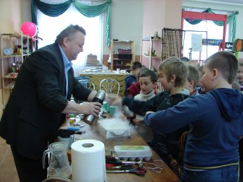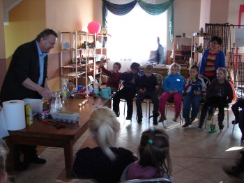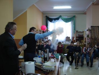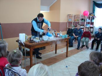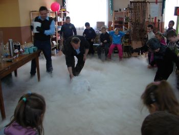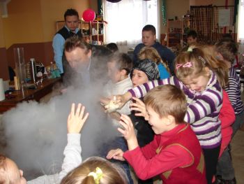 13 grudnia 2012r. uczniowie z klasy I, II i III uczestniczyli w kolejnych warsztatach na wystawie interaktywnej. Dzieci brały udział w wielu ciekawych pokazach i doświadczeniach. Nabywały nowych umiejętności podczas udziału w zajęciach. Największe zainteresowanie wzbudziły pokazy z ciekłym azotem. Wielką radość sprawiało dzieciom robienie wielkiej bańki mydlanej, w której mieściło się kilku uczniów. Dzieci wykonywały także zabawkę "skaczącą fasolkę". Wyjazd na warsztaty został zorganizowany w ramach kółka przyrodniczego "Jestem badaczem przyrody", projektu realizowanego w szkole "Równy Start" finansowanego z funduszów europejskich EFS.