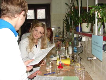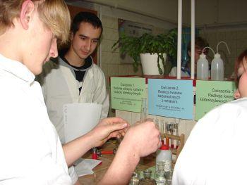 24 stycznia 2013r. uczniowie klasy III gimnazjum uczestniczyli w projekcie edukacyjnym, którego celem jest rozbudzanie w młodzieży zainteresowań związanych z ekologią i ochroną przyrody, a także budowanie więzi społecznych pomiedzy uczniami z różnych środowisk. W ramach tego projektu zostały zorganizowane przez nauczycieli chemii (panie Lucynę Filosek, Ewę Kulczyk, Monikę Bąk, Irenę Suchoń i pana Grzegorza Filoska) i uczniów Warsztaty chemiczne z chemii organicznej. Uczniowie naszej szkoły wykonywali po 16 różnych doświadczeń chemicznych oraz wypełniali karty pracy. Pracowali z bardzo dużym zaangażowaniem. Nauczyciele ze szkoły ponadgimnazjalnej bardzo chwalili naszych gimnazjalistów za sposób radzenia sobie z zadaniami, które wykonywali po raz pierwszy. Kolejne warsztaty chemiczne z udziałem naszych uczniów odbędą się 14 marca. Będą to konsultacje dla uczniów przygotowujących się do egzaminu gimnazjalnego. Wybrana przez nas tematyka to SOLE. Wszystkich uczniów zachęcamy do udziału w kolejnych zajęciach praktycznych.