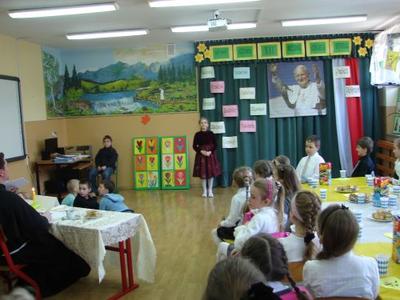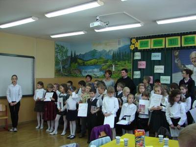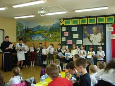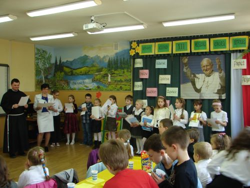 Dzieci pięknie recytowały swoje wiersze, prezentowały wysoki poziom zdolności recytatorskich, a przede wszystkim przenosiły nas do tych miejsc w Ojczyźnie, które ukochał Jan Paweł II-patron naszej szkoły. Dzięki temu konkursowi po raz kolejny można było uświadomić sobie, jak prawdziwe jest przysłowie „Cudze chwalicie, swego nie znacie”. Wędrowaliśmy z Janem Pawłem II po górach, Jego ukochanych Tatrach, odmówiliśmy różaniec w Ludźmierzu, odwiedziliśmy Wadowice, „gdzie wszystko się zaczęło”, poprzez Kraków i Łagiewniki, Warszawę i Olsztyn dotarliśmy na Mazury, a wszystko po to, by jeszcze bardziej docenić i odkryć piękno naszej Ojczyzny.