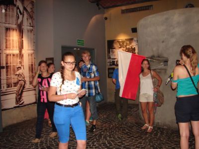 Pełni sił i chęci do dalszego zwiedzania udaliśmy się do Muzeum Powstania Warszawskiego, jednak zanim tam dojechaliśmy , to przewodnik krótko przybliżył nam historię naszej stolicy. Interaktywne muzeum pozwoliło nam lepiej wyobrazić sobie krzywdy wyrządzone Polakom podczas II wojny światowej. Pomogło odczuć klimat walki o wolność i niepodległość kraju, odtworzyć atmosferę powstańczej warszawy. Był to ostatni punkt programu, więc po zwiedzaniu wszyscy uczestnicy zajęli miejsca w autobusie i udaliśmy się w drogę powrotną. Młodzież, która brała udział w wycieczce bardzo zintegrowała się podczas drogi powrotnej.