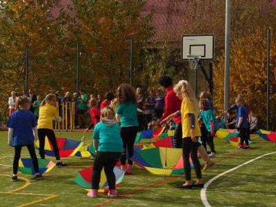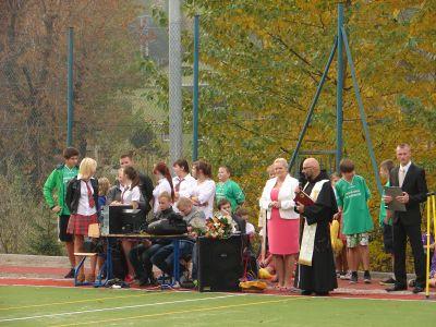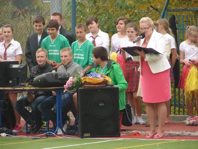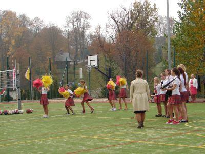 14 października 2013r. w naszej szkole odbyła się bardzo oczekiwana uroczystość - otwarcie pierwszych w Rychwałdzie obiektów sportowych: boiska wielofunkcyjnego i placu zabaw z siłownią. Wszyscy bardzo cieszymy się z nowych obiektów, które zdecydowanie poprawią warunki, w których będą obywały się lekcje wychowania fizycznego oraz zajęcia pozalekcyjne. Obiekty będą służyć także mieszkańcom, którzy będą chcieli aktywnie wypoczywać. Na uroczystość przyszło wielu zaproszonych gości. Wśród nich przybyły władze samorządowe z wójtem Gminy Gilowice panem Leszkiem Frasunkiem, przewodniczącym Rady Gminy panem Janem Małysiakiem, wiceprzewodniczącym panem Krzysztofem Hubką oraz radnymi. Gościliśmy także radnych powiatowych panią Annę Satławę oraz pana Zbigniewa Gąsiorka, prezesów klubów sportowych, przedstawicieli placówek oświatowych i innych instytucji działających na terenie gminy, sołtysów Rychwałdu i Gilowic. Fundację Partnerstwo Dorzecza Kocierzanki i Koszarawy (instytucji pośredniczącej w pozyskaniu środków na budowę obiektów) reprezentowała Dyrektor Biura pani Julia Nawalkowska. Nauczyciele wraz z uczniami przygotowali program sportowo- artystyczny, w ramach którego uczennice z klasy I gimnazjum wystąpiły w pokazie z pomponami przy śpiewie nowej wersji piosenki "Koko, koko, boisko spoko" (przygotowane przez Małgorzatę Bąk) , najmłodsi uczniowie zaprezentowali "Taniec z parasolkami" (opiekunki Barbara Bodzek i Dorota Walatek), a gimnazjaliści rozgrzewkę w formie aerobiku prowadzoną przez Kasię Wnętrzak. Po rozgrzewce uczniowie przy skocznej muzyce demonstrowali, jakie dyscypliny sportu można uprawiać na boisku: gra w koszykówkę, piłkę siatkową i ręczną, skok w dal czy pchnięcie kulą (nauczyciele w-f Dariusz Kudzia i Piotr Jaroszek). Na zakończenie odbył się taniec zwany "belgijką", w którym uczestniczyli także ojciec proboszcz Bogdan Kocańda i ojciec Piotr Odój, a także nauczyciel W-F Dariusz Kudzia. Zaproszeni goście otrzymali pamiątkowe podziękowania i okolicznościowe kalendarzyki, wykonane przez nauczycielki naszej szkoły (Elżbietę Marszałek i Agnieszkę Knapek). W drodze na okolicznościowy poczęstunek zaproszeni goście podziwiali gazetki ścienne o tematyce sportowej na korytarzach szkolnych. Swoją obecność potwierdzili dokonując wpisu do pamiatkowej Kroniki Szkoły.