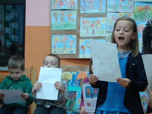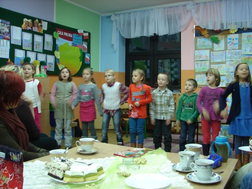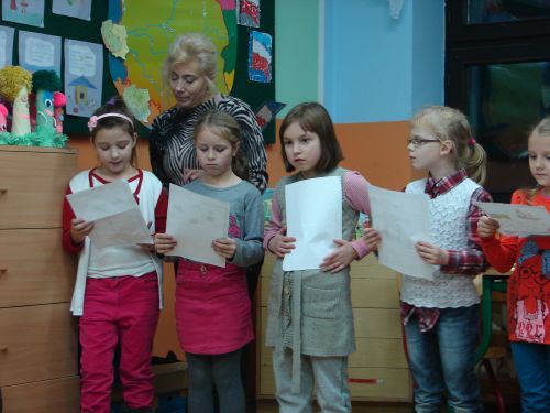 W dniu 3 grudnia o godz. 16.00 odbyło się spotkanie rodziców i uczniów klasy I zorganizowane przez wychowawcę panią Teresę Michalską. Na spotkaniu dzieci zaprezentowały swe umiejętności czytając krótkie teksty. Wszyscy uczniowie bardzo się starali, aby bezbłędnie przeczytać przygotowane zdania. Najmłodsi zaśpiewali także kilka piosenek nagrodzonych gromkimi brawami rodziców. Z wielką uwagą rodzice obejrzeli film pt. "Wychowanie przez czytanie". Film został przygotowany przez autorki akcji "Cała Polska czyta dzieciom". Zostały pokreślone walory czytania i jego terapeutyczne właściwości. Rodzice wspólnie z dziećmi powinni czytać przynajmniej 20 min. dziennie.