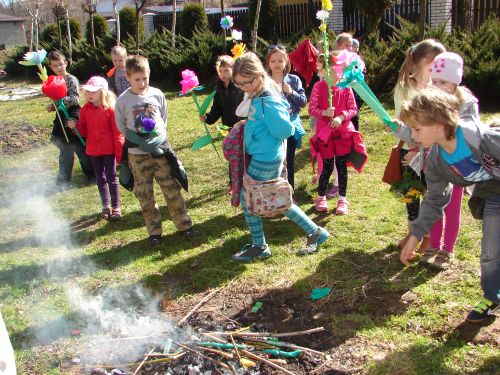 W pierwszy dzień wiosny, jak tradycja nakazuje należy udać się z Marzanną nad rzeczkę, aby definitywnie pożegnać się z zimą. Tak też uczynili najmłodsi uczniowie i dzieci z oddziału przedszkolnego. Barwnym korowodem przeszli ul Św. Jana do Łosin, aby tam na dobre powiedzieć - Zimo żegnaj! Towarzyszyła im piękna pogoda z błękitnym pogodnym niebem z wiosennym ciepłym słonkiem. Starsi uczniowie mieli warsztaty plastyczne, na których wykonywali piękne wiosenne kwiaty. Gimnazjaliści powitali wiosnę w kinie oglądając film pt. "Kamienie na szaniec", a następnie udali sie do parku, aby tam z aparatami fotograficznymi "zapolować" na oznaki wiosny. Wszyscy bardzo miło spędzili pierwszy dzień wiosny.