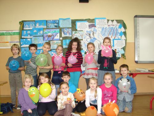 Uczniowie z klasy II otrzymali baloniki, które mieli zamienić w zwierzaka. Na efekty ich pracy nie trzeba było długo czekać, a ile było radości i dumy z poczucia dobrze wykonanego zadania wystarczy spojrzeć na zdjęcia.