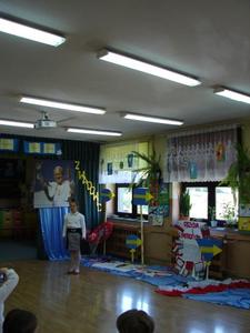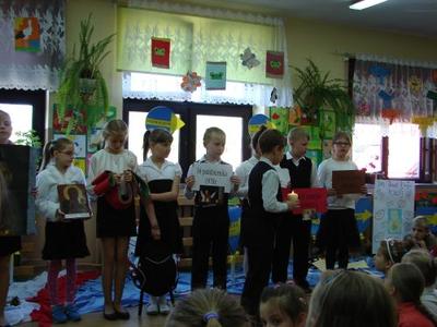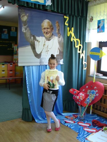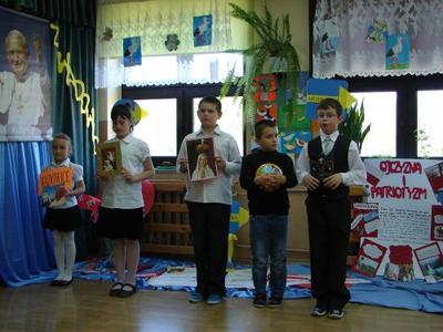 Jak co roku panie nauczycielki klas I-III przygotowały konkurs recytatorski, który z racji kanonizacji Jana Pawła II poświęcony był naszemu Patronowi. Tematyka wierszy związana była z wartościami, jakimi kierował się Św. Jan Paweł II w Drodze do Świętości. Konkurs cieszył się dużym zainteresowaniem. Brały w nim udział dzieci z Gilowic, Świnnej, Rychwałdku, Kocierza Moszczanickiego oraz naszej szkoły. Występy oceniało jury w składzie: pani Gabriela Kolonko -dyrektor GOK Gilowice, pani Małgorzata Bąk - nauczycielka języka polskiego z naszej szkoły, a ojców franciszkanów reprezentował ojciec Karol Januszewski. Piękne nagrody książkowe zostały ufundowane przez Radę Rodziców z naszej szkoły.